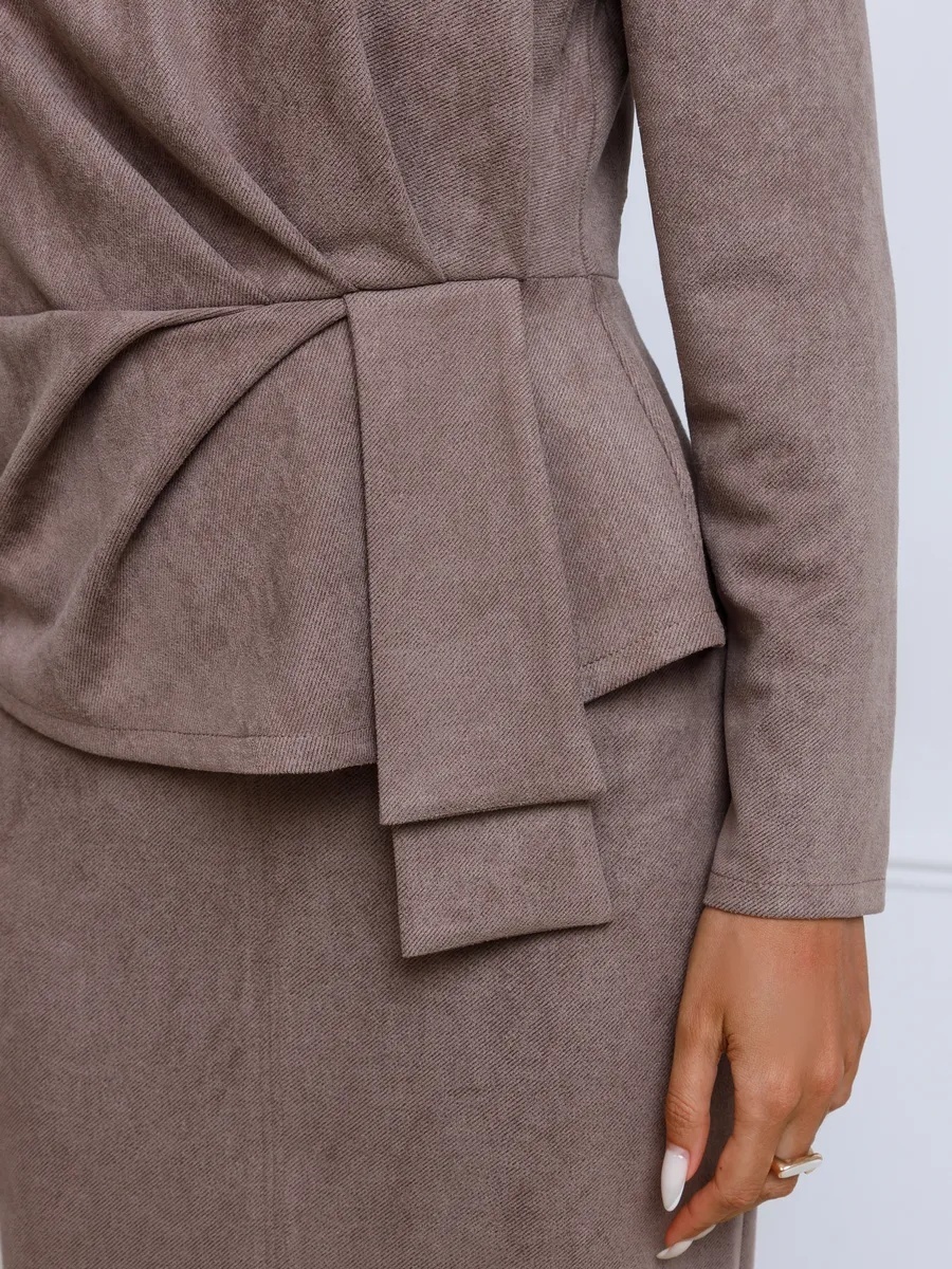 В мире моды женский костюм, состоящий из юбки и кофты с длинным рукавом, занимает особое место, объединяя элегантность, комфорт и практичность. Наш новый костюм, выполненный из высококачественной ткани в бежевом цвете, станет отличным дополнением к вашему гардеробу. Этот костюм идеально подходит как для повседневных образов, так и для более формальных мероприятий.Юбка из нашего костюма демонстрирует утонченный дизайн с небольшим разрезом, который добавляет нотку игривости и женственности. Разрез не только делает образ более динамичным, но и придаёт ему определённую изюминку, позволяя вам чувствовать себя уверенно и раскрепощенно. Кофта с длинным рукавом, входящая в комплект, украшена стильной сборкой в области талии, что придаёт ей дополнительный шарм. Такой элемент дизайна не только подчеркивает женственную фигуру, но и создаёт эффектный силуэт, делая образ завершённым и гармоничным. Комфортный крой позволяет свободно двигаться, а мягкая текстура ткани обеспечивает удобство при носке в течение всего дня.Этот женский костюм в мелкую клетку станет вашим верным спутником в самых различных ситуациях. Он идеально подходит для офисных будней, деловых встреч и корпоративов, а также для вечерних выходов и свиданий. Легко комбинируйте его с классической обувью на каблуке или стильными балетками для создания разных образов. Дополните наряд крупными аксессуарами или изящными украшениями, чтобы сделать свой стиль уникальным и запоминающимся.Представленный костюм из ткани «гусинная лапка» не только отвечает актуальным модным тенденциям, но и обеспечивает максимальный комфорт в носке. Это идеальный выбор для современной женщины, которая ценит качество, стиль и многофункциональность. Позвольте себе быть яркой и неповторимой каждый день с нашим стильным женским костюмом! Сделайте свой заказ прямо сейчас и обновите свой гардероб!
